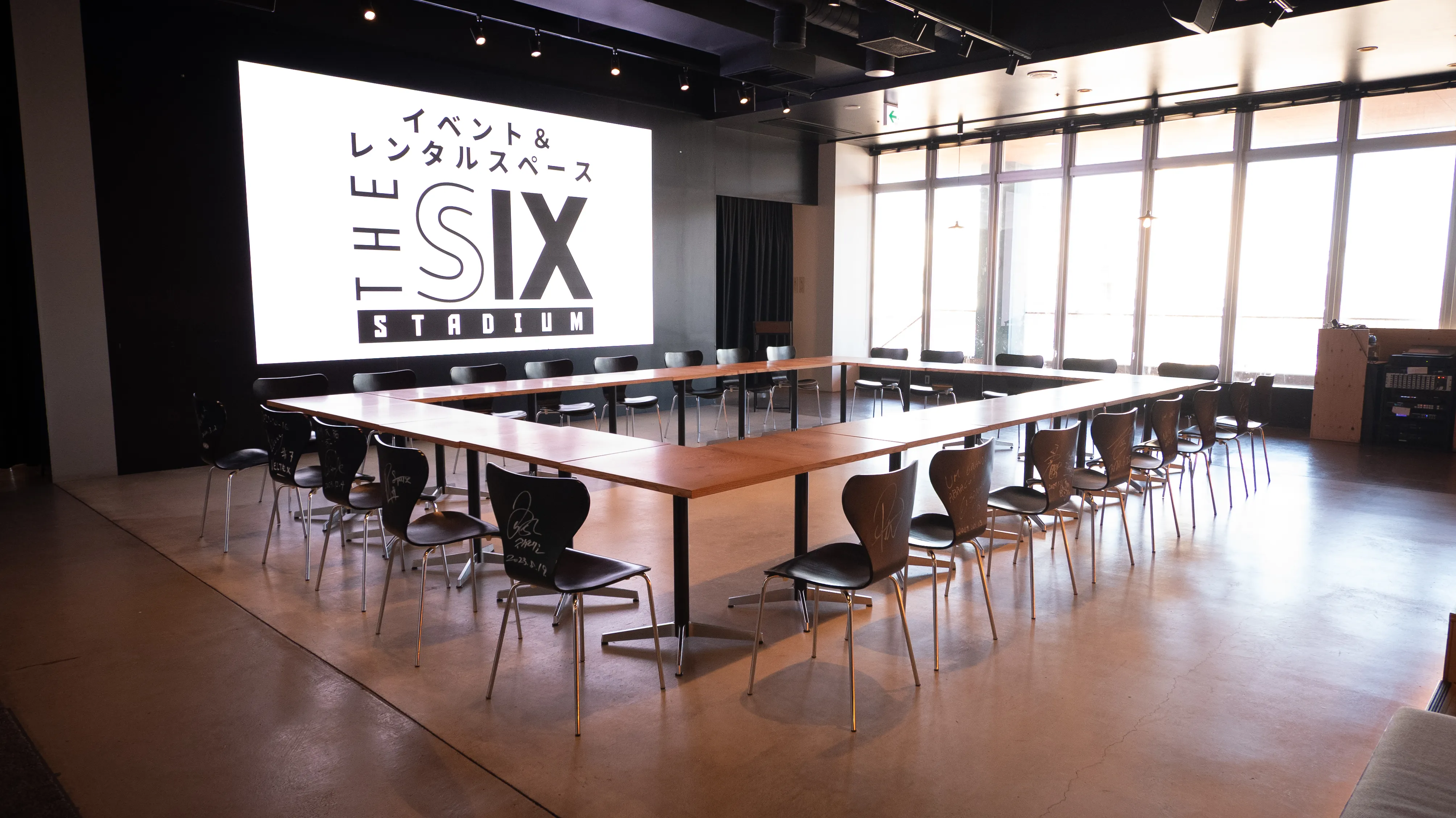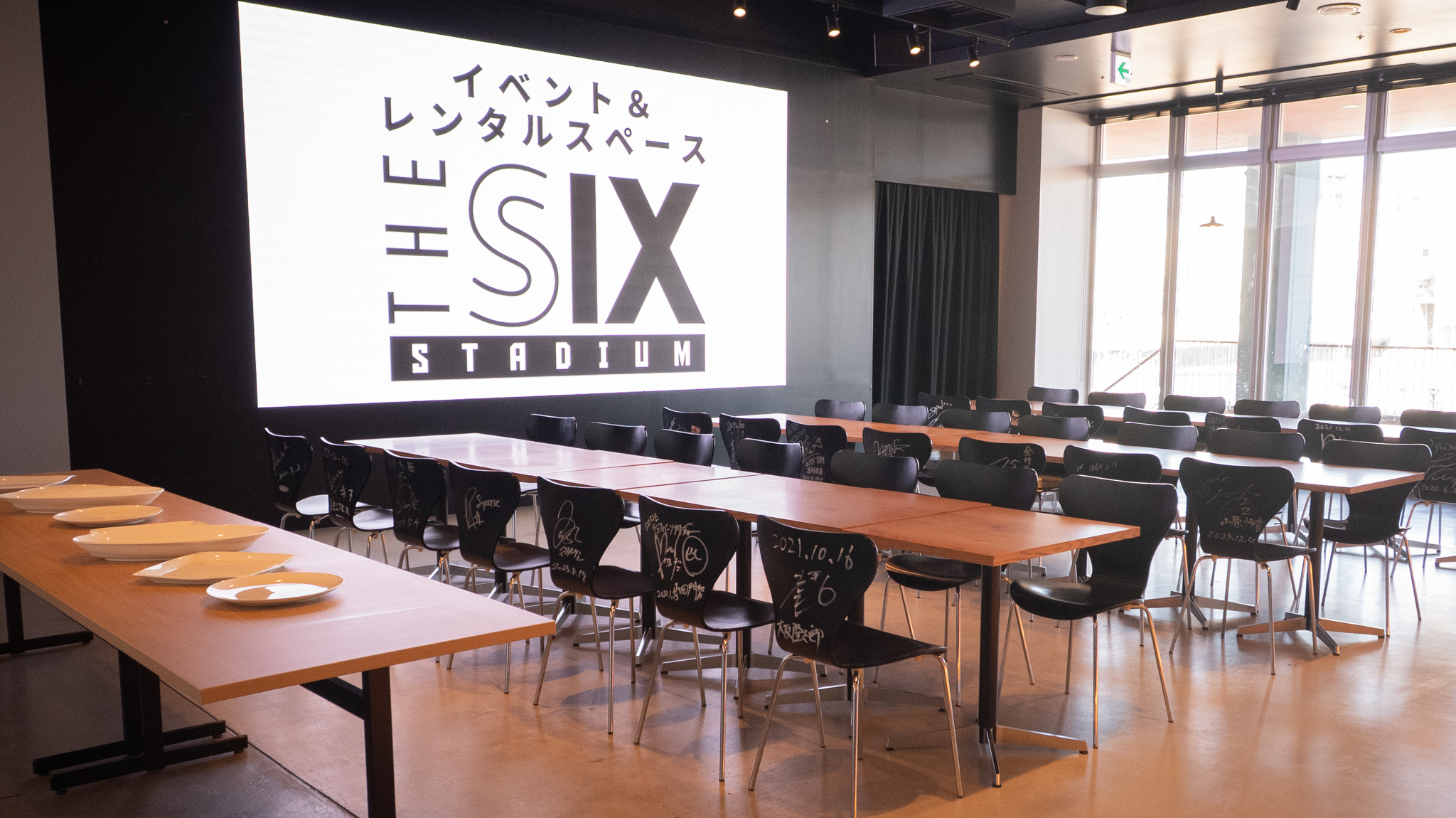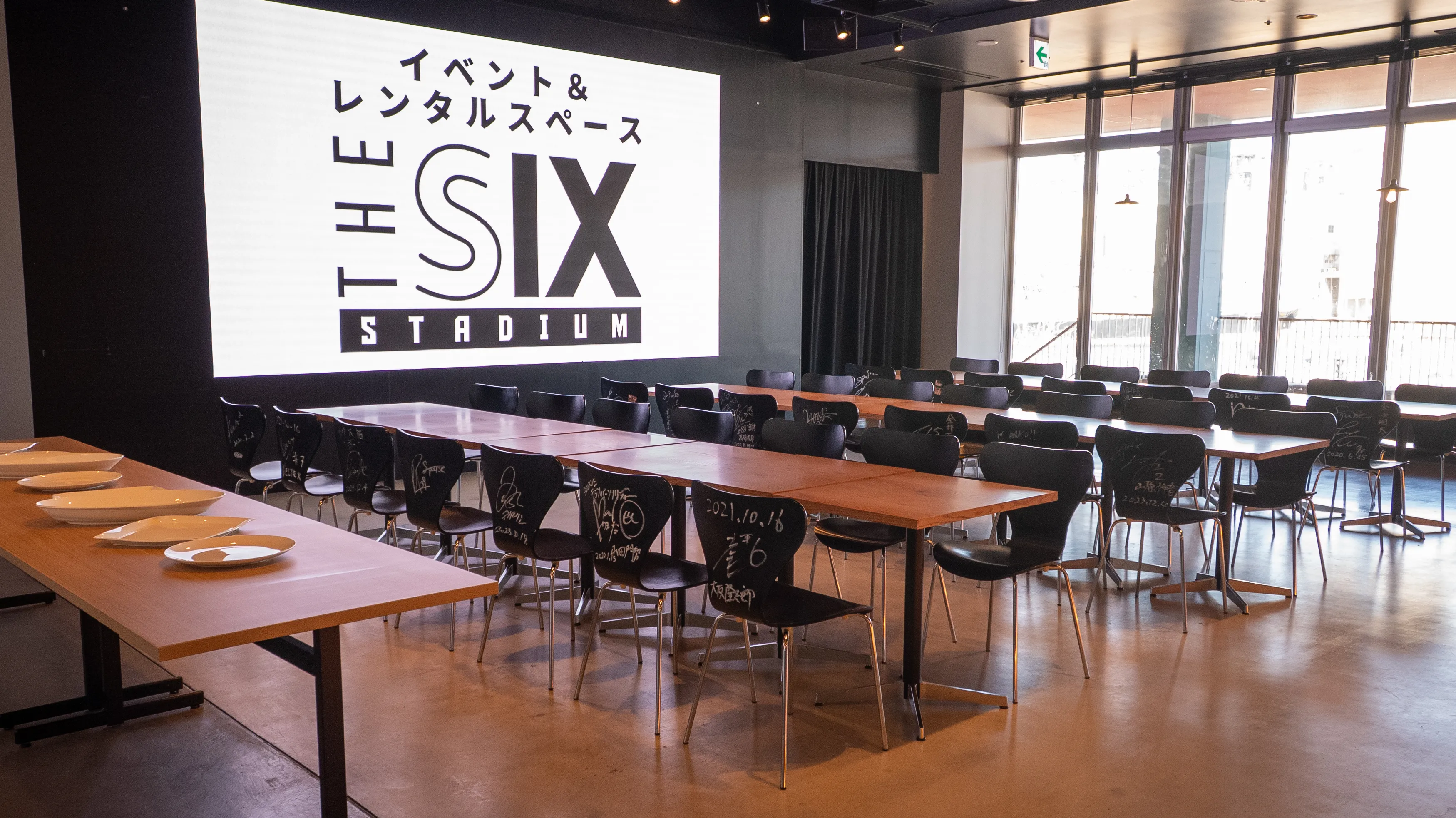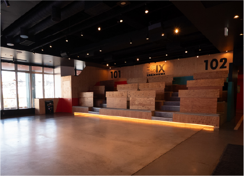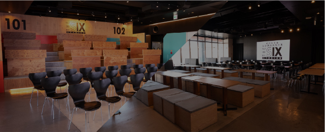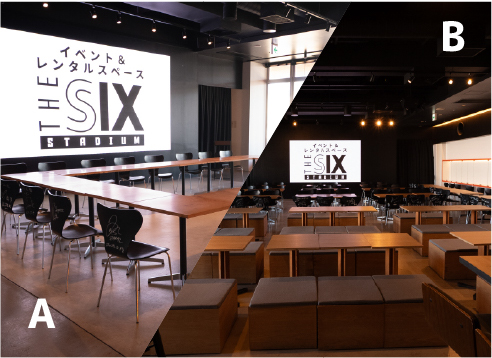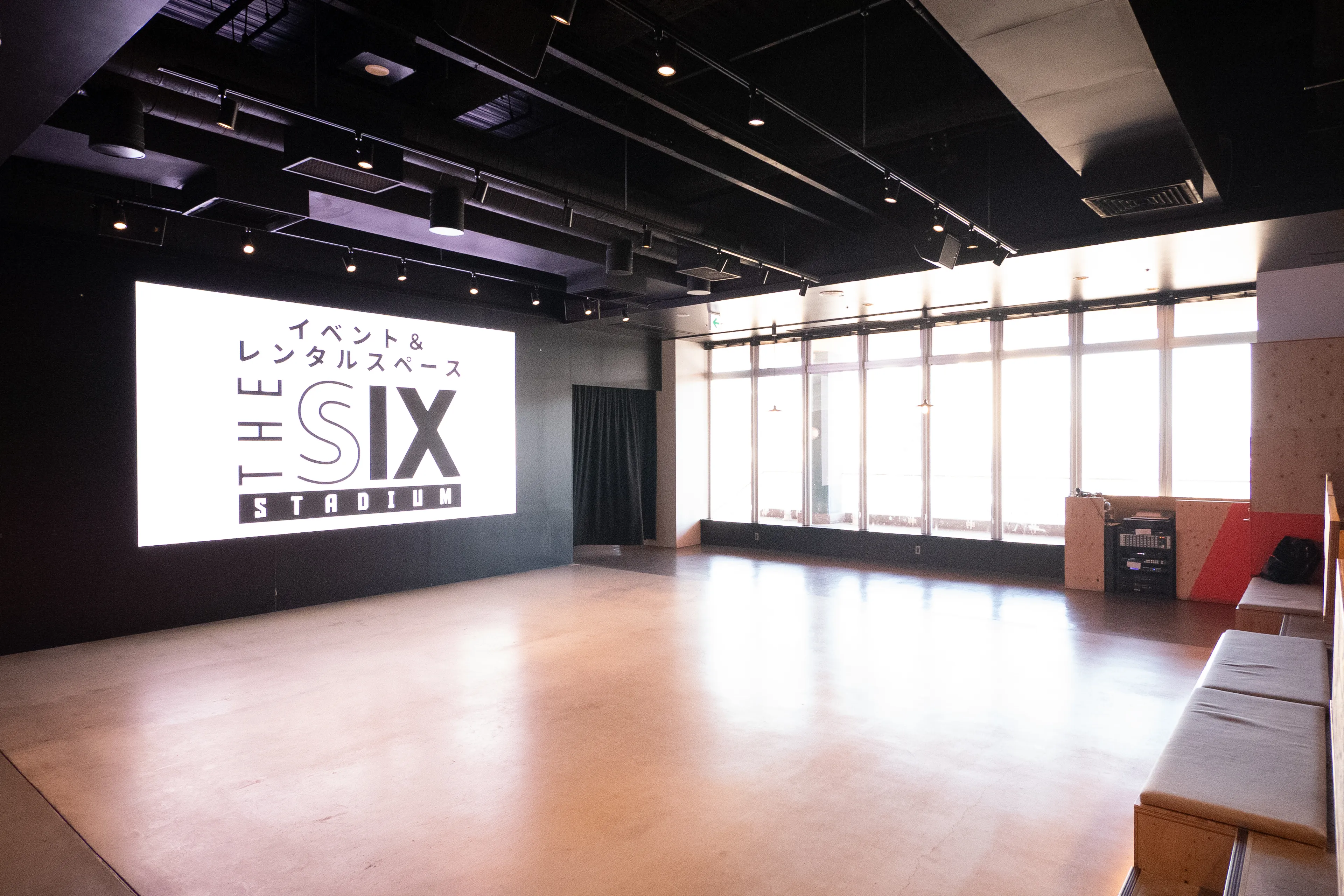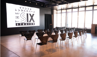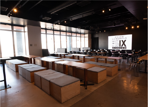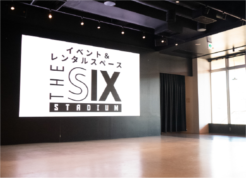 イベント&レンタルスペース「THE SIX STADIUM」は、最大300名収容のレンタル可能な多目的空間です。 スポーツ観戦の熱気を再現するイベントやパブリックビューイングのほか、企業のブランディング、地域課題解決プロジェクト、マルシェや文化体験イベントなど、幅広い用途で利用でき、新たなつながりと未来を生み出します。