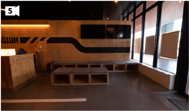 THE SIX STADIUMの特徴はスペースやモニターを見渡せるスタジアム席。後方に座ると前が見にくい・・・という問題を解決。